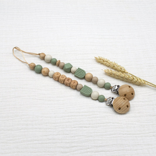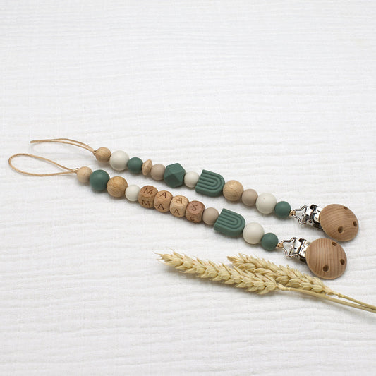 Speenkoord met naam Soft Rainbow | Donkergroen