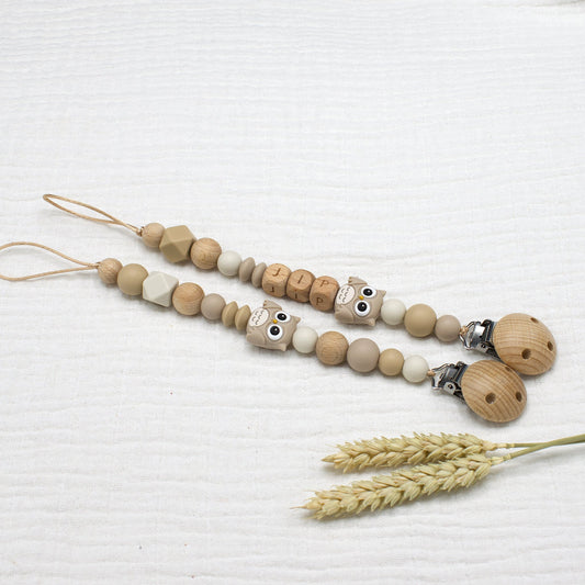 Speenkoord met naam Kleine Uil | Beige